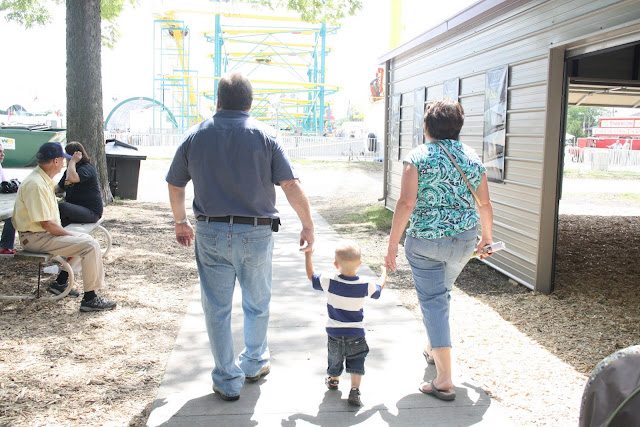 In and out of the different barns to look at the animals, and made a long stop in the building that housed the fish. Yes, fish. We spent a long time looking at the big and little fish swim around. I love seeing Carson's face light up in excitement. And I think my favorite part of the whole entire day is seeing Carson enjoy himself. He loved every minute of it, and we had to do some major convincing to get him to move to the next stop.