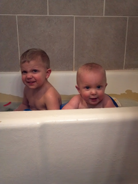 Weston absolutely loves to wrestle. And I am not even kidding about this. If you are on the ground, you can start the countdown from 5, and I can guarantee by the time you hit 1, Wes will be on top of you. He doesn't just crawl on top of you, he does it in such a "boy" manner. He throws his hands up, and throws himself on top of you. It is so funny to watch him. Carson has gotten wrestled a few times by his little brother, and we laugh so hard because Weston isn't much smaller than Carson, and I have a feeling this is only the beginning of the wrestling days. Lord, please protect my family :)